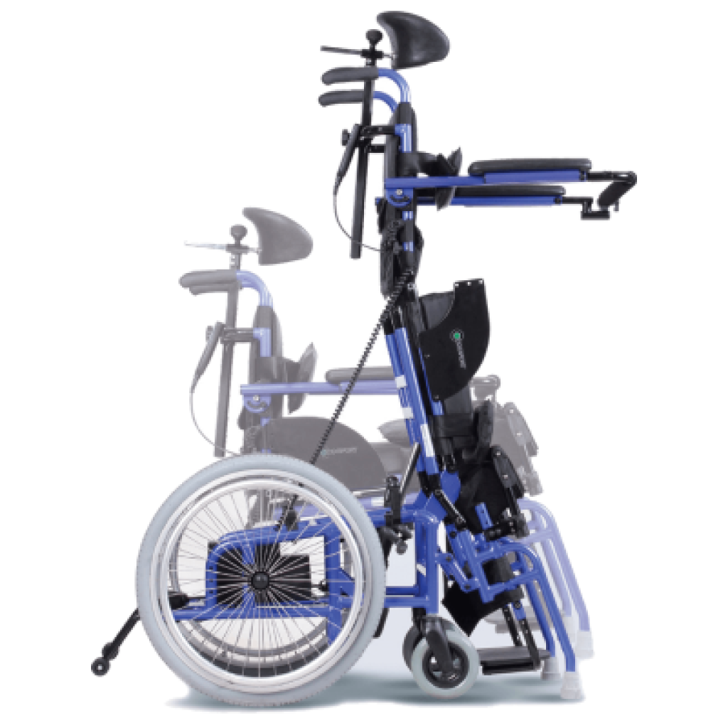 Serabral Palsi,Sipina Bifida ve Alt Ekstremite bozukluğu olan çocuklar için dik pozisyonlandırma sandalyesidir.