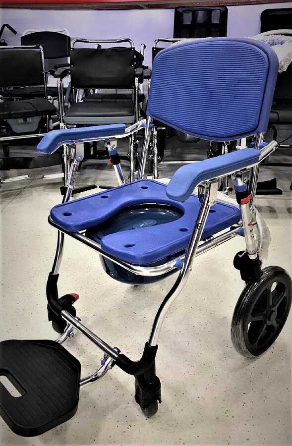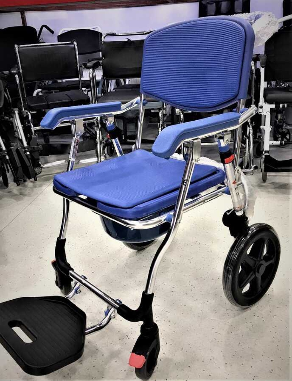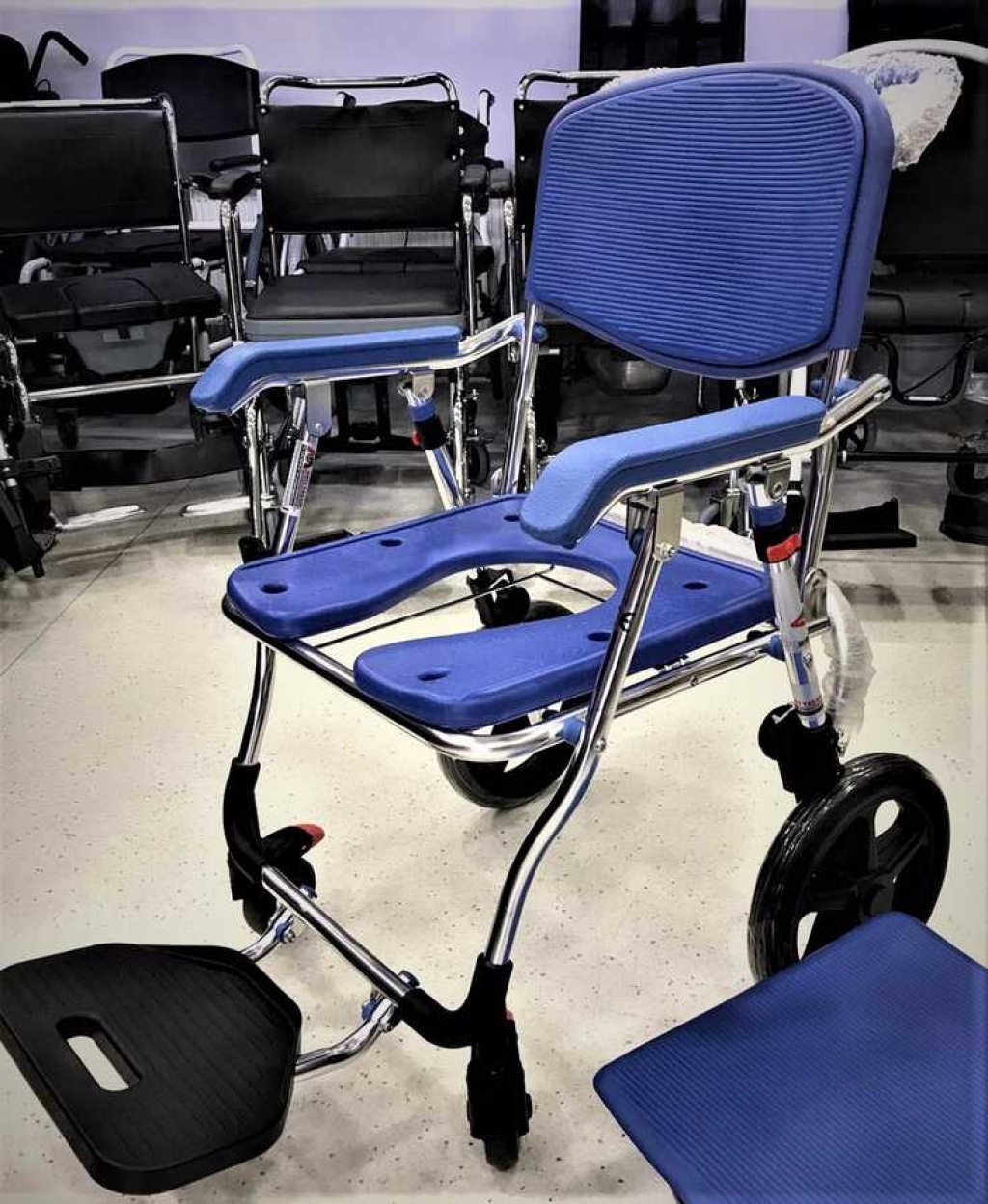 Golfi G551 banyo ve tuvalet sandalyemiz küçük tekerlekli olduğu içi refekatçı kullanımına uygun bir modeldir.