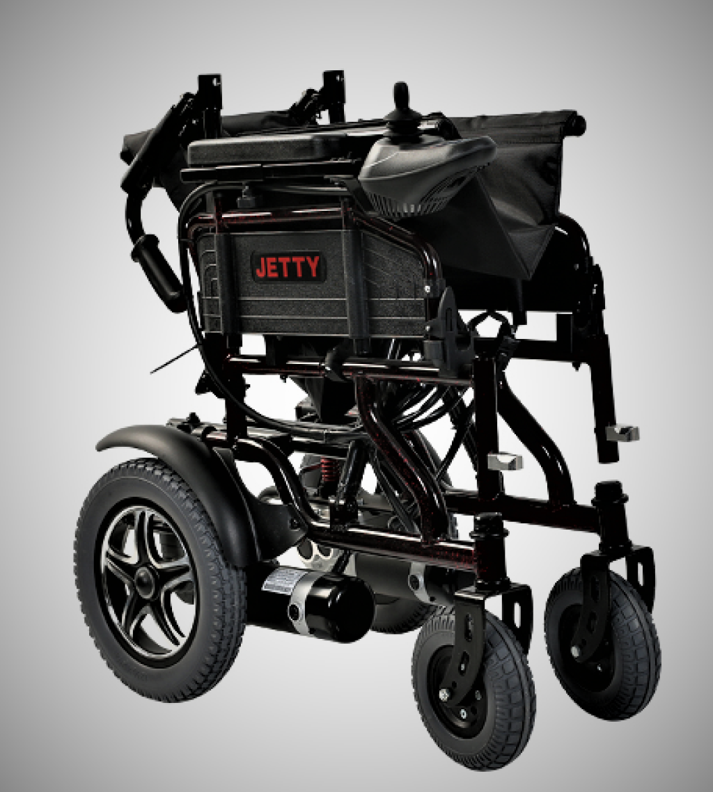 Jetty JT110 akülü engelli sandalyesi görüntü ve estetik olarak da göz dolduran bir modeldir.