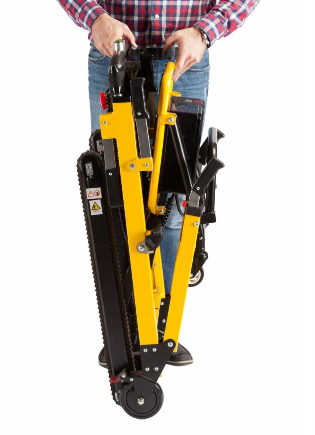 Engelli kişi önce cihazın üzerine oturtulup sonra cihaz refakatçı kontrolü ile merdivenleri inip çıkabilir.